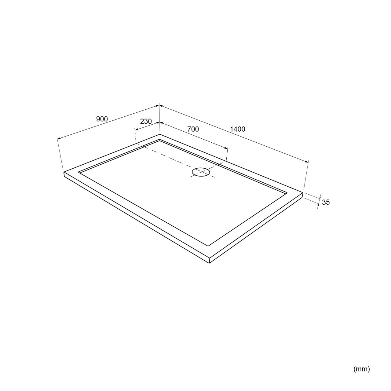 Ce receveur de douche mesure 90 cm de large et 140 cm de long.