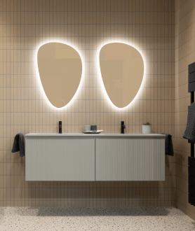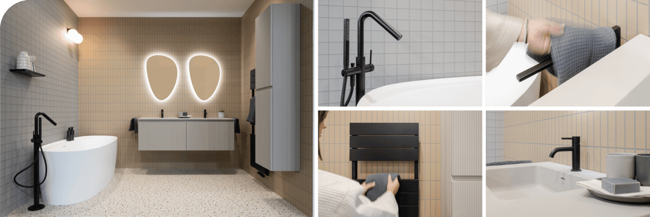 Le gris ennuyeux ? Pas dans cette salle de bain ! Ici, les différentes nuances de gris s’associent pour créer un look à la fois ludique et contemporain, avec des formes organiques comme éléments phares. Le jeu subtil des lignes et des courbes douces apporte dynamisme et harmonie. Grâce à un choix réfléchi des matériaux, cette salle de bain est non seulement élégante, mais aussi un choix durable pour l’avenir.