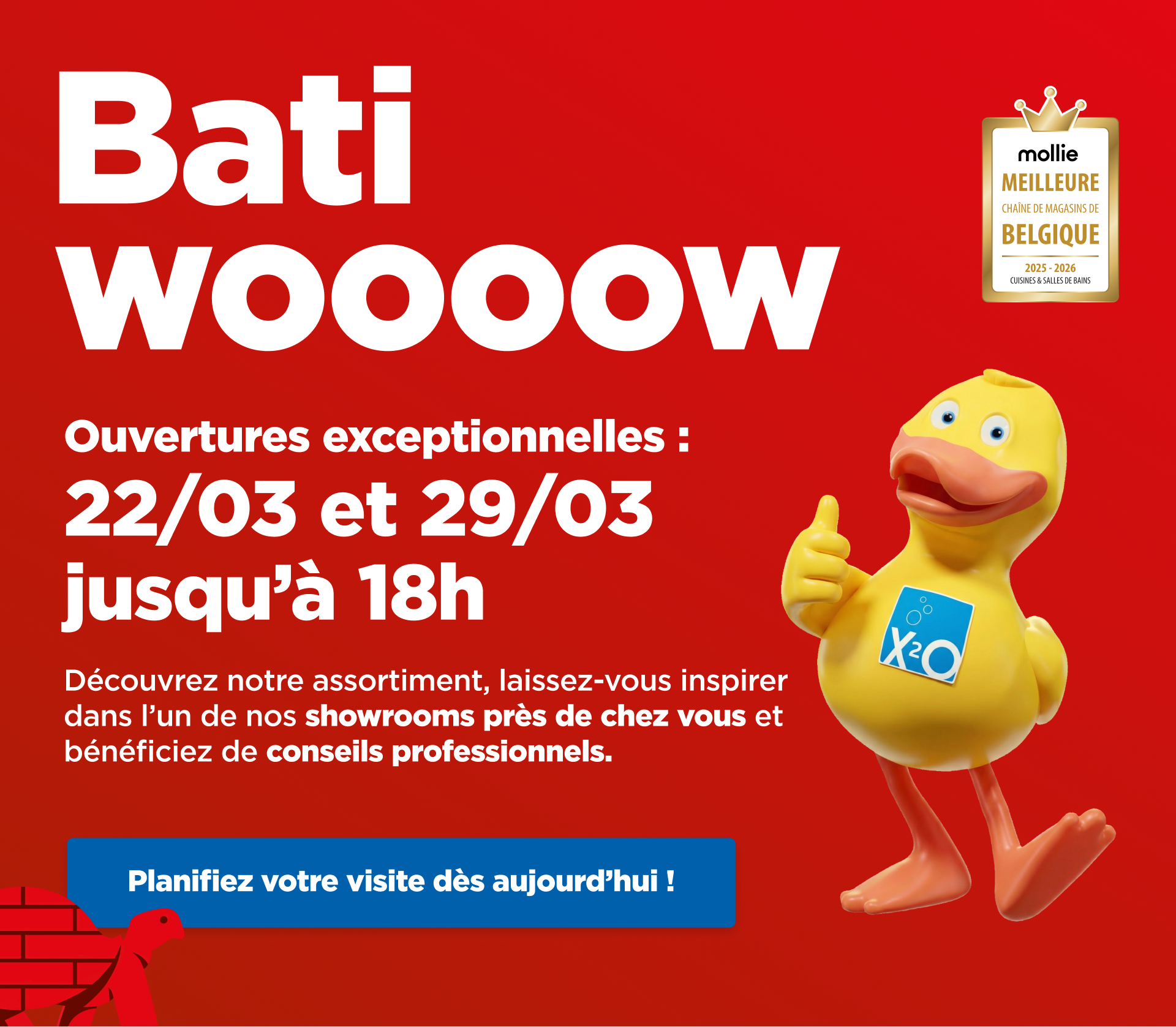 En tant que magasin sanitaire de référence, X2O offre aussi un vaste choix de robinets, toilettes, radiateurs et accessoires. Chaque magasin de salle de bain X2O mise sur la qualité, l’ergonomie et des prix attractifs. Vous profitez jusqu’à 10 ans de garantie et d’un accompagnement complet de la conception à l’installation.