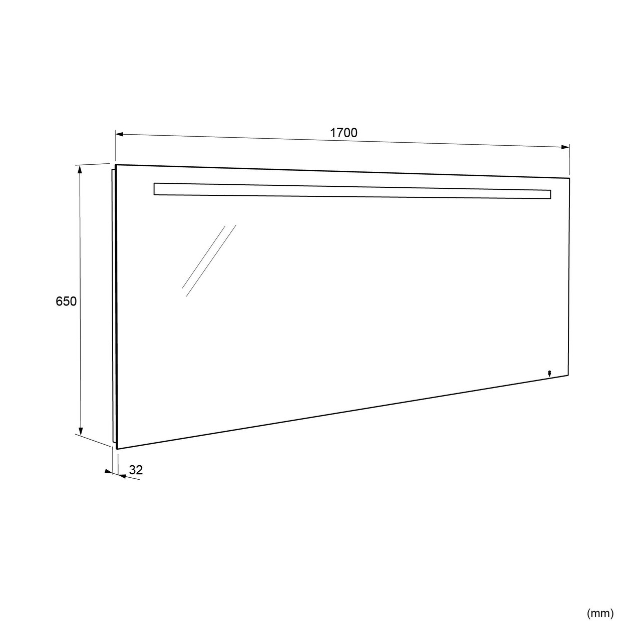 Ce panneau miroir rectangulaire fait 170 cm de large et 65 cm de haut. Le miroir avec éclairage convient à toute salle de bains grâce à son style raffiné.