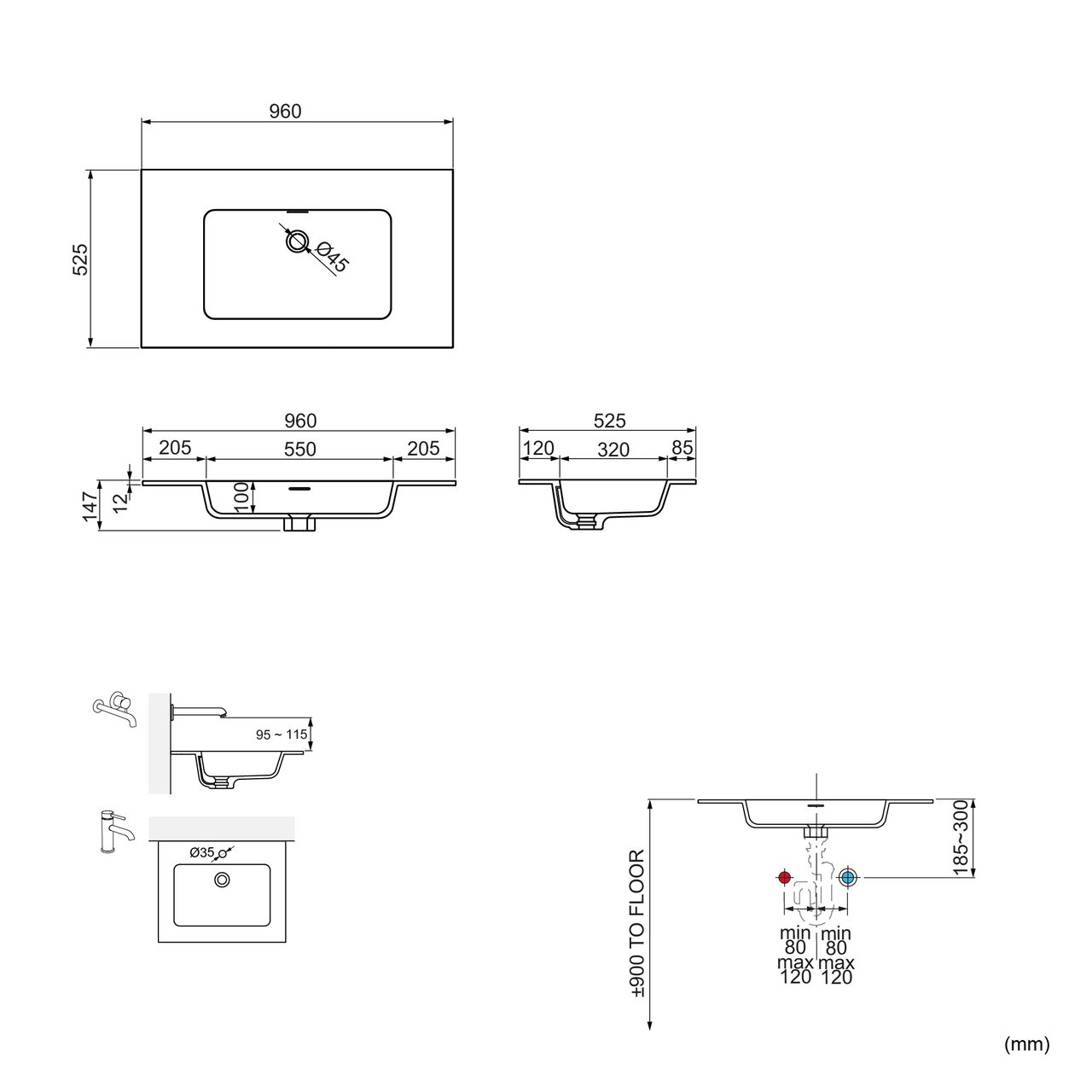Ce lavabo est également disponible en d'autres dimensions , en version avec crépine incluse et en version hauteur de rebord de 9 cm.