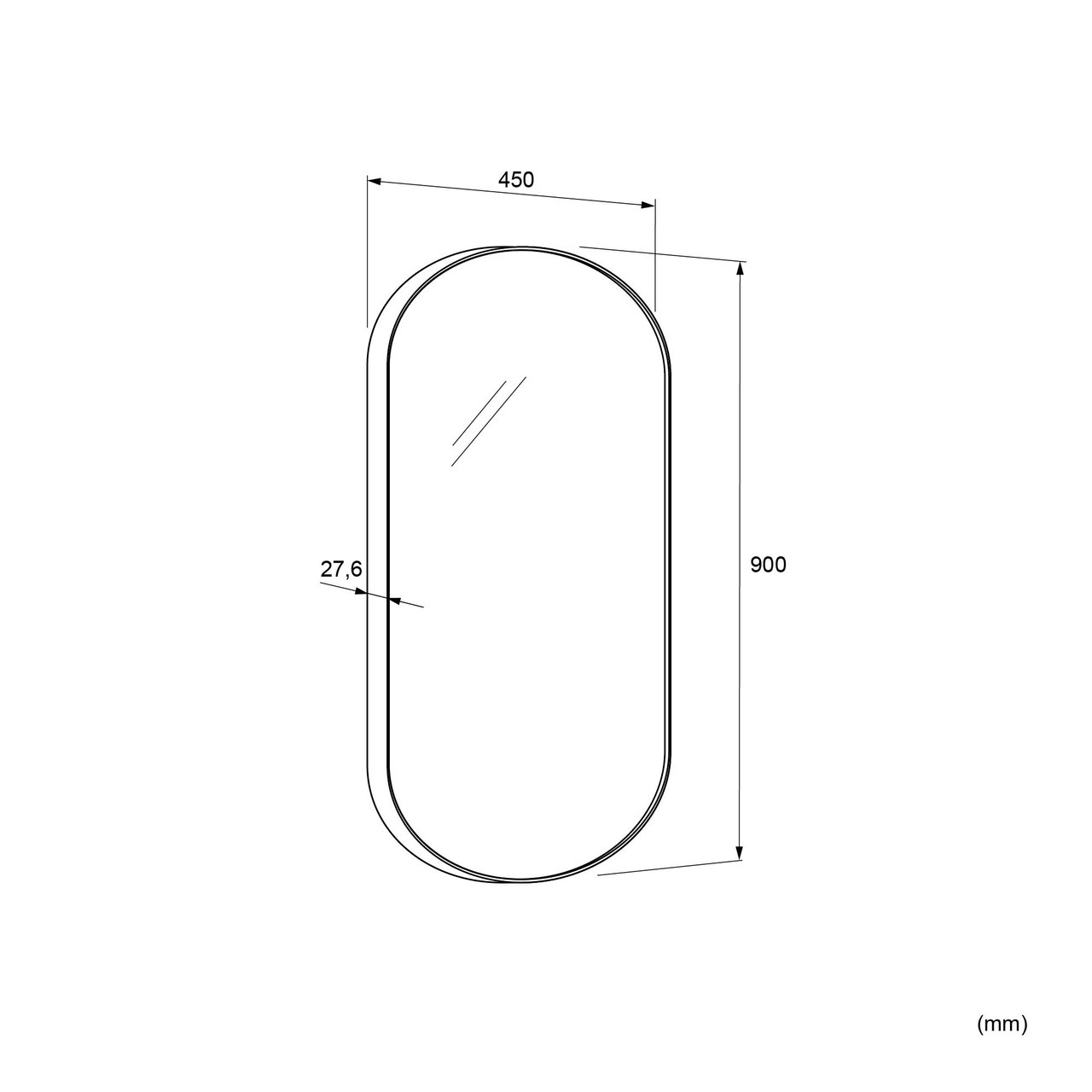 Ce panneau miroir ovale fait 45 cm de large et 90 cm de haut.Le miroir avec un bord encadré noir s'intègre dans toute salle de bain grâce à sa finition intemporelle.