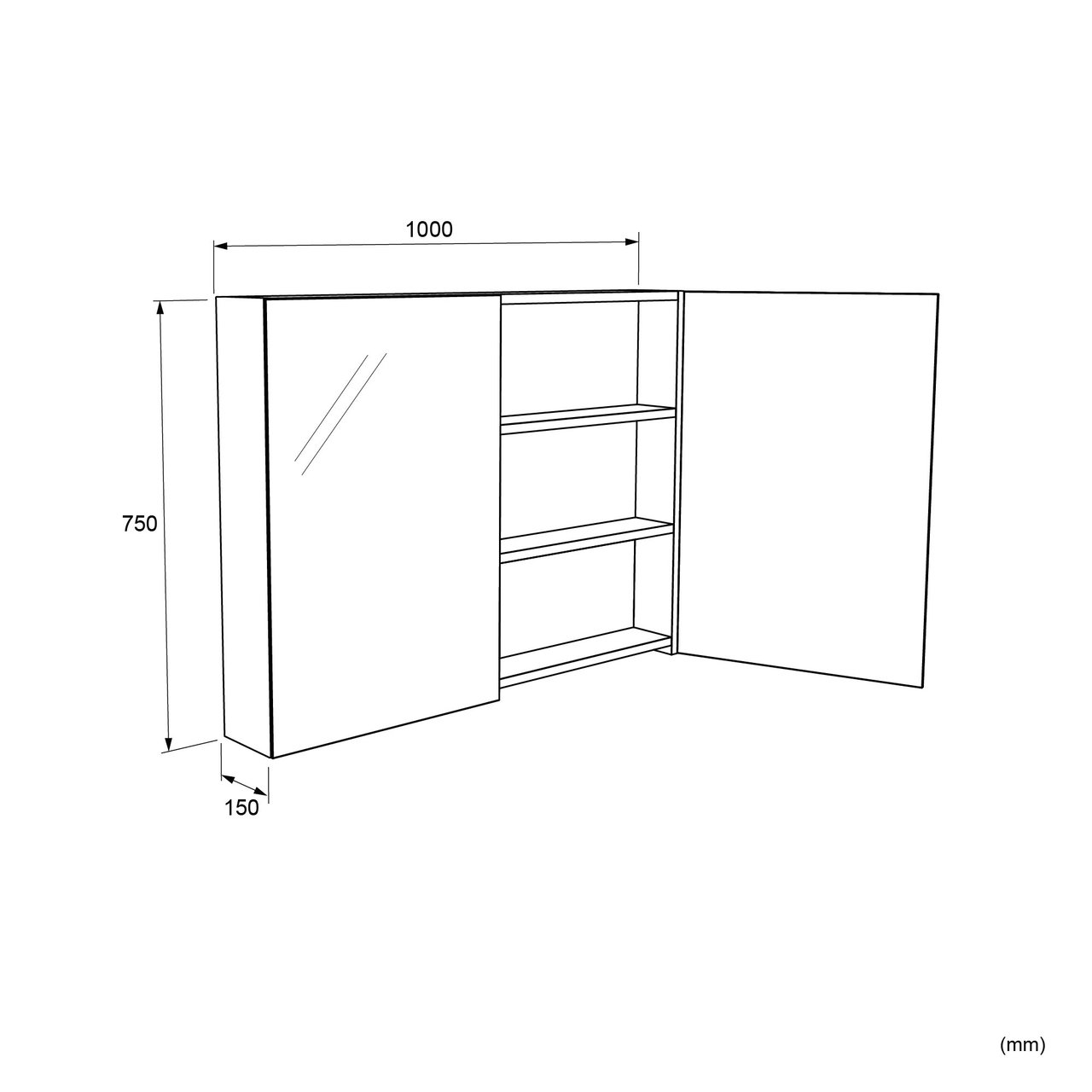 Cette armoire miroir MDF en peinture brillante a une largeur de 100 cm, une hauteur de 75 cm et une profondeur de 15 cm. Cette armoire miroir Blanc Brillant convient parfaitement dans une salle de bains avec un aspect jeune.