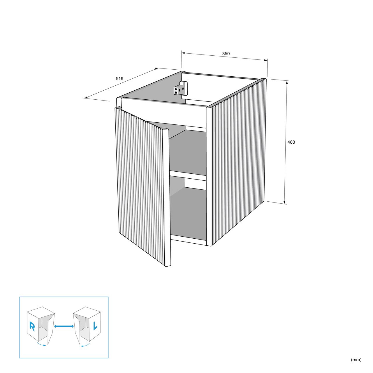 Ce meuble sous lavabo en MDF avec feuille PVC a une largeur de 35 cm, une hauteur de 48 cm et une profondeur de 52 cm. Cette armoire flottante en Chêne brut convient à toute salle de bains grâce à sa finition élégante.
