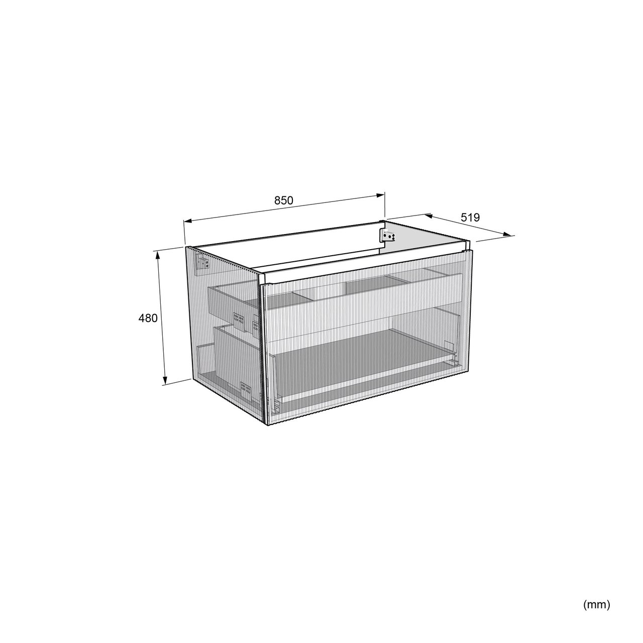Ce meuble sous lavabo en MDF avec feuille PVC avec deux tiroirs a une largeur de 85 cm, une hauteur de 48 cm et une profondeur de 52 cm. Cette armoire flottante en noyer convient à toute salle de bains grâce à sa finition élégante.