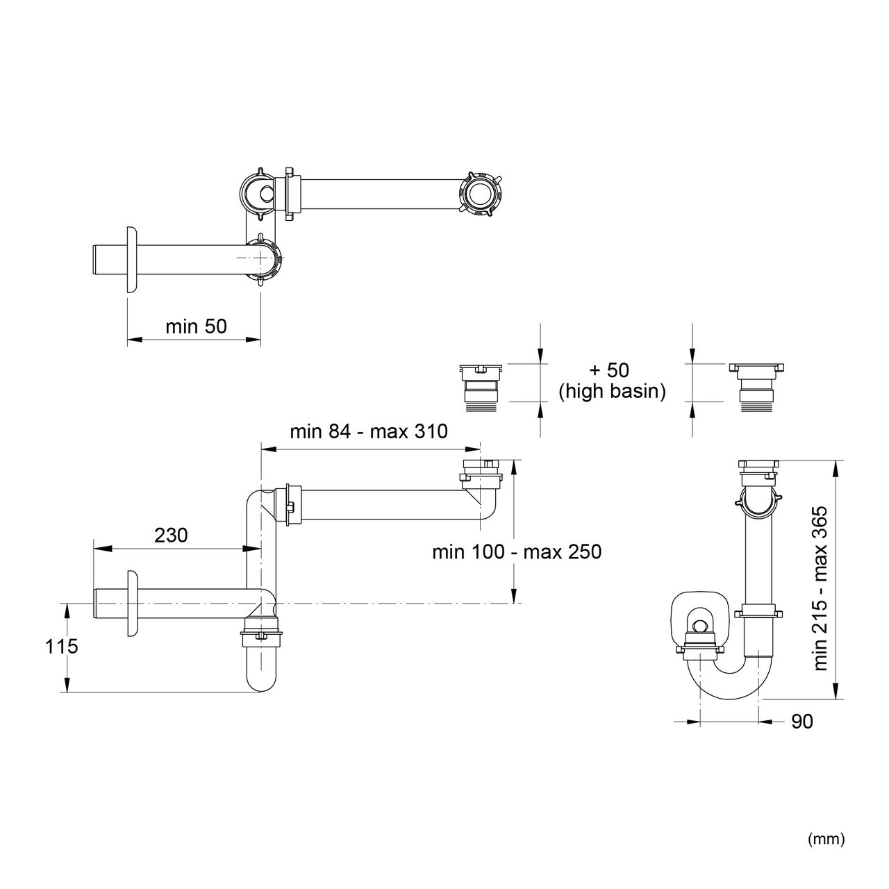 Rallonge de 50 mm pour les lavabos hauts incluse.