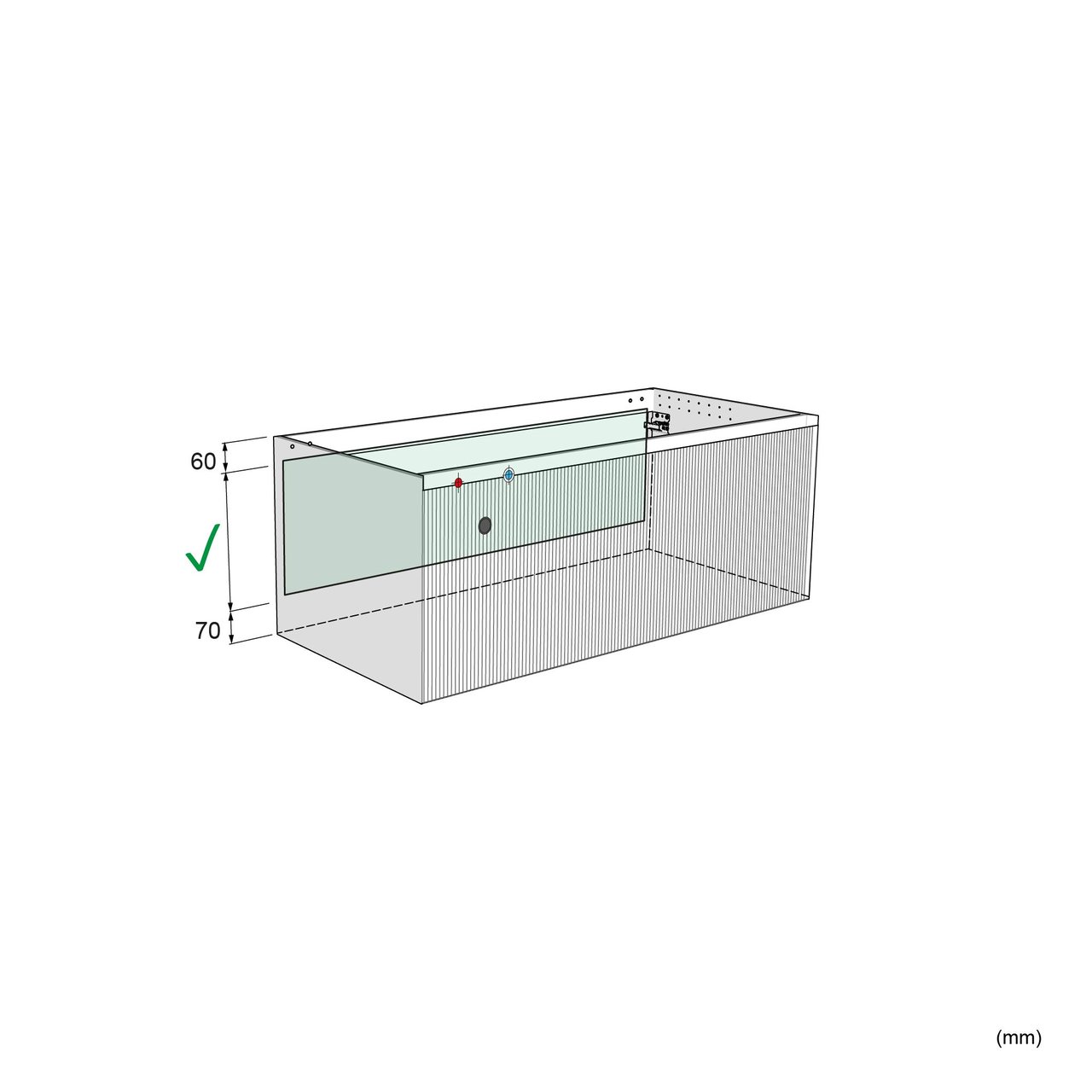 Veiligheidstip: een Santeg ondersteuningsprofiel is sterk aanbevolen voor een perfecte installatie en om de zwevende kast optimaal te ondersteunen.