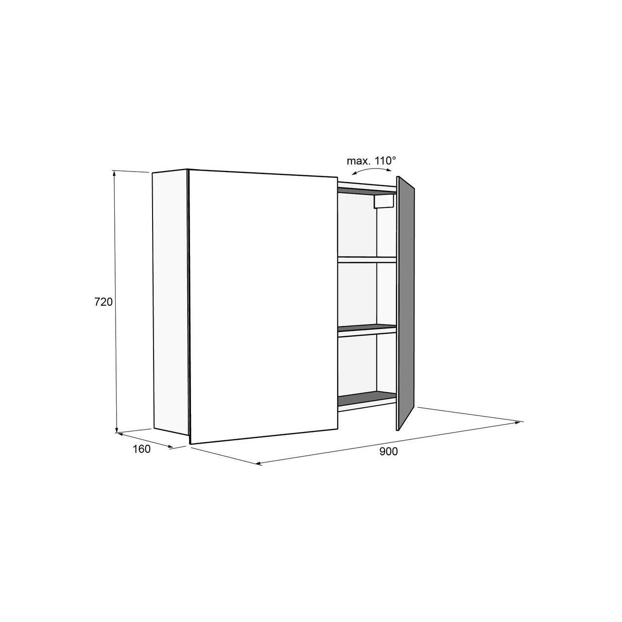 Deze eersteklas melamine spiegelkast heeft een breedte van 90 cm, een hoogte van 72 cm en een diepte van 16 cm. Deze spiegelkast in ruwe eik past perfect in een badkamer met een warme en authentieke stijl.