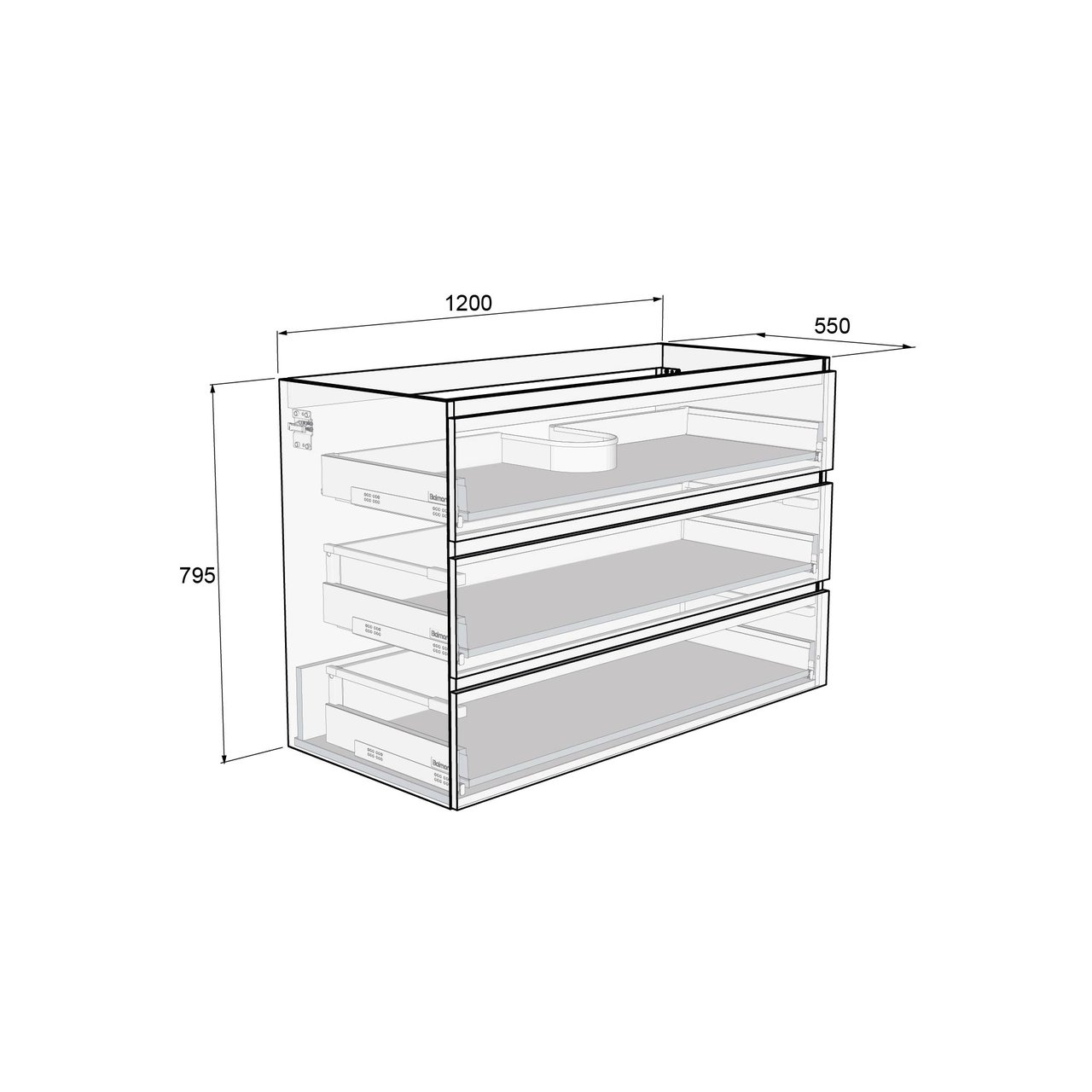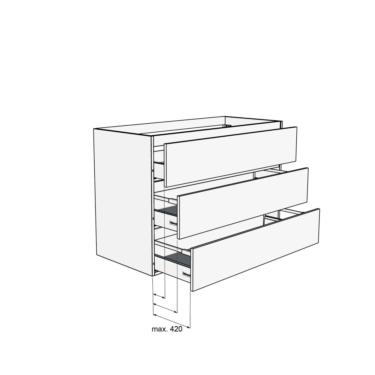Soort lade | Zwarte metalen lade Hettich met rechte wanden | |