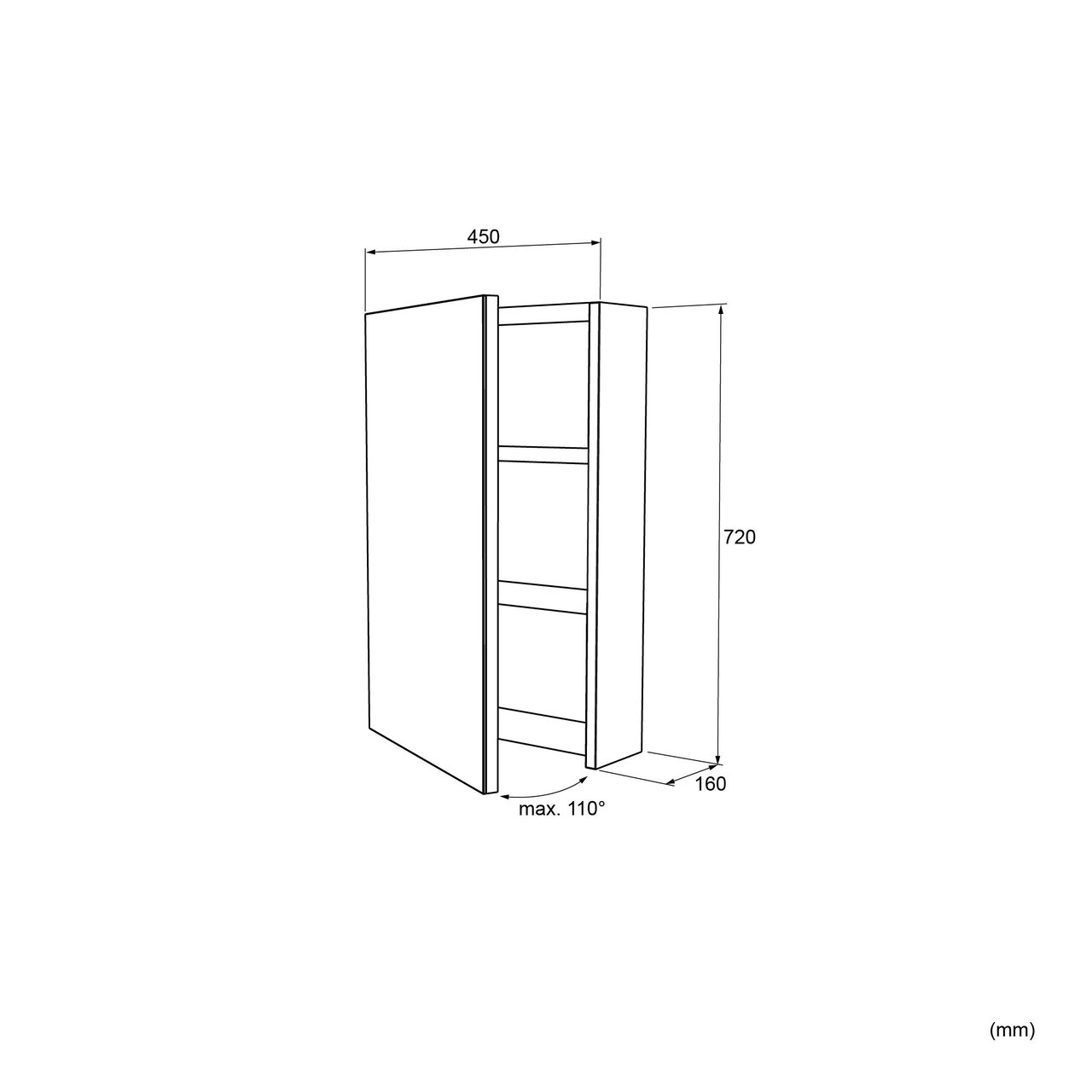 Deze eersteklas spiegelkast in MDF met matte lak heeft een breedte van 45 cm, een hoogte van 72 cm en een diepte van 16 cm. Deze spiegelkast in mat zwart past perfect in een badkamer met tijdloze look.