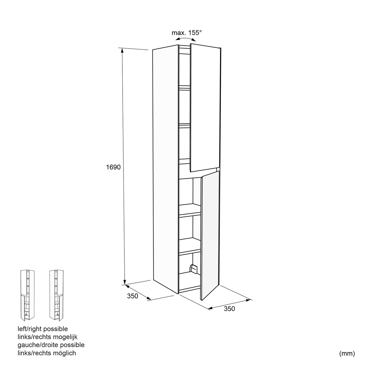 Deze eersteklas badkamerkast met 2 deuren heeft een breedte van 35 cm, een hoogte van 169 cm en een diepte van 35 cm. Deze zwevende kast in wilde eik past in elke badkamer door zijn strakke afwerking.