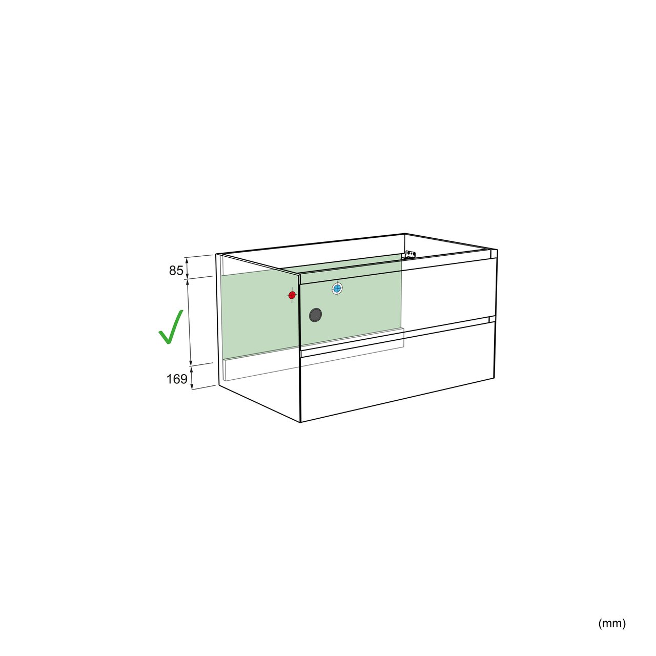 Veiligheidstip: een Santeg ondersteuningsprofiel is sterk aanbevolen voor een perfecte installatie en om de zwevende kast optimaal te ondersteunen.
