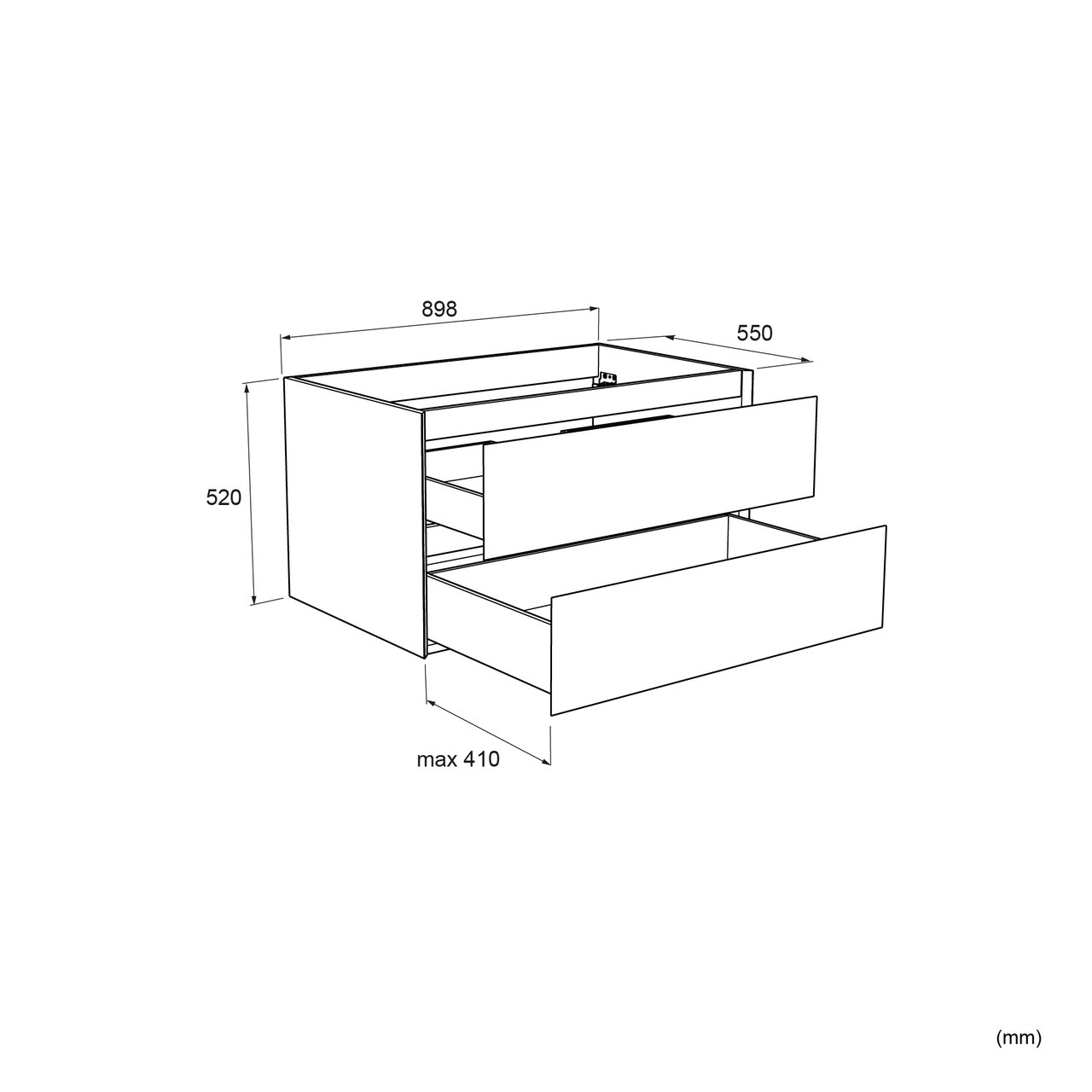 Deze eersteklas fineren wastafelonderkast met twee lades heeft een breedte van 90 cm, een hoogte van 52 cm en een diepte van 55 cm. Deze zwevende kast in natuur eik past in elke badkamer door zijn strakke afwerking.