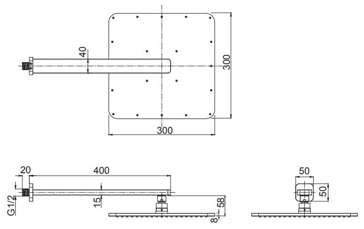 Type bevestiging regendouchekop | Met wand douchearm | |