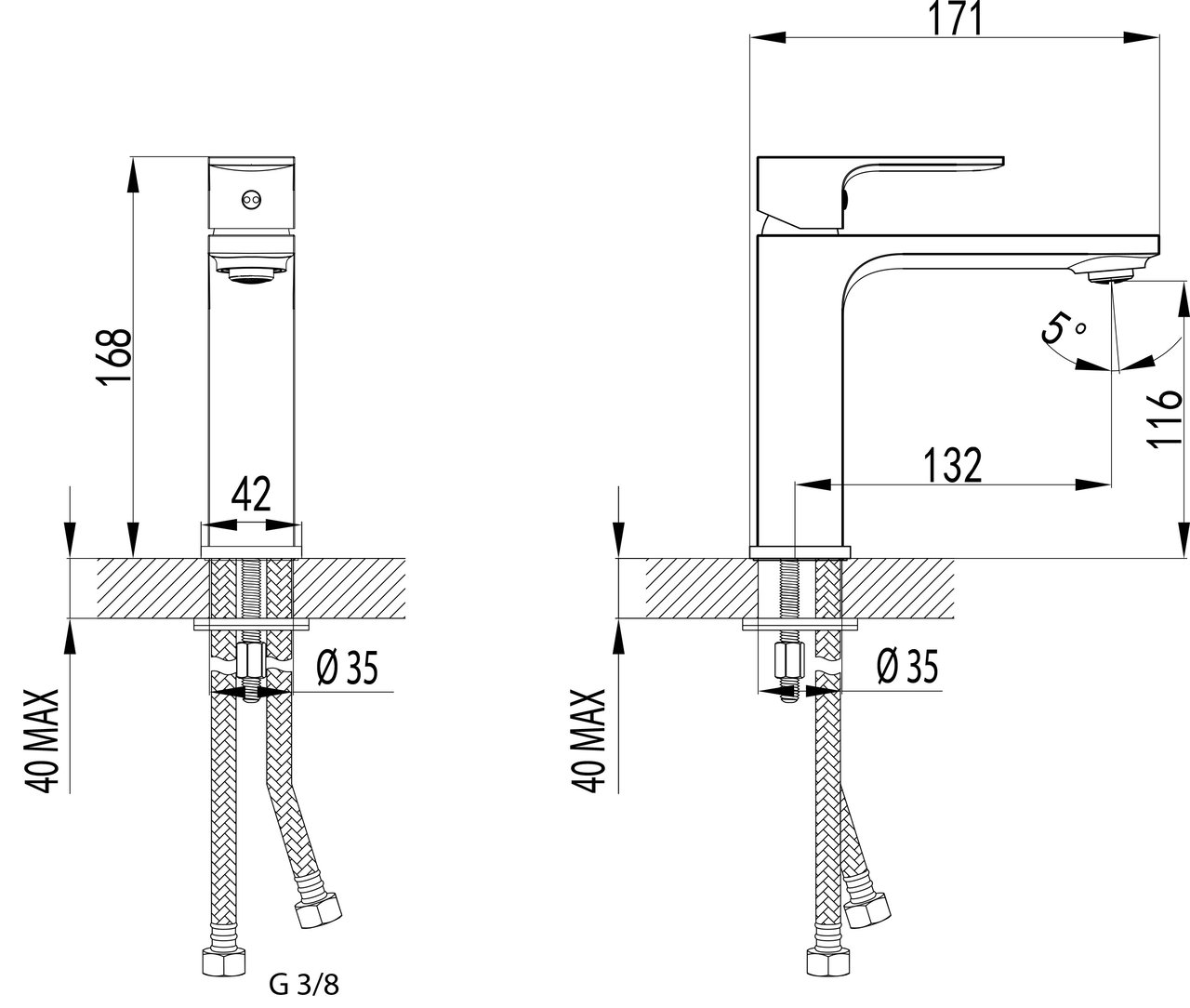 Max. tabletdikte voor kraaninstallatie | 40 mm | |