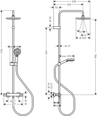Afmetingen regendouchekop | Ø20.5cm | |