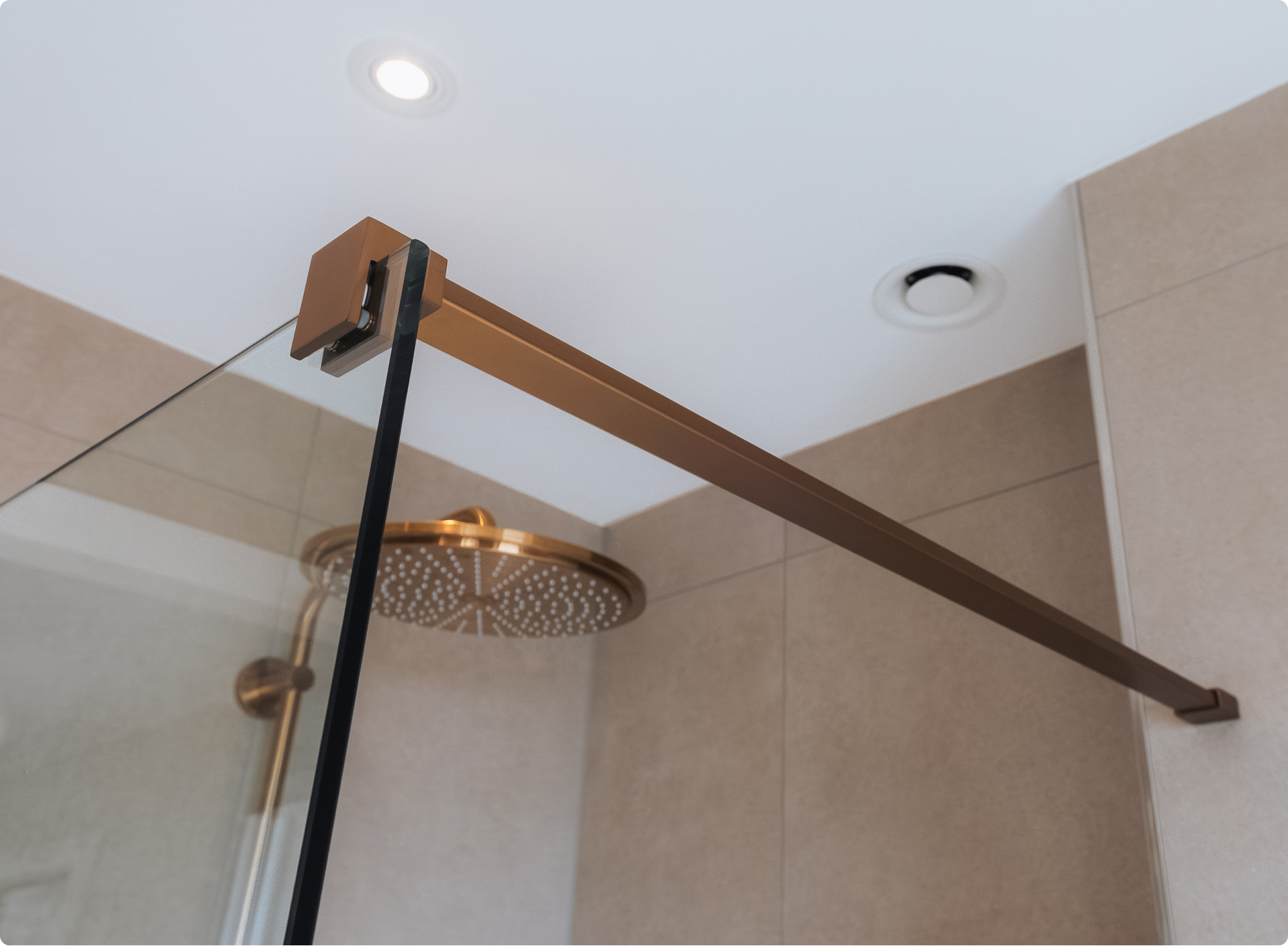 Bij zulke stijlvolle keuzes voor het badkamermeubel en opbergruimte, hoort uiteraard ook een comfortabele douche met karakter! Amanda koos ook hier voor een Brushed Warm Sunset kraan van Grohe. De kleur van de kraan komt bovendien terug in de doucheaccessoires – van het douchewissertje tot de stabilisatiestang. It's all in the details!