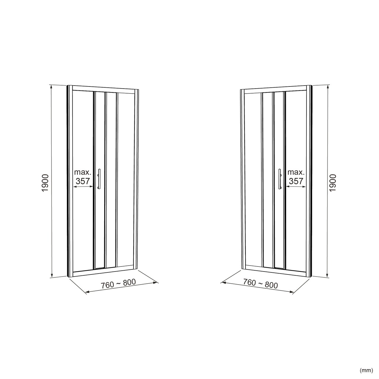 Regelbereik breedte douchedeur | 76 - 80 cm | |