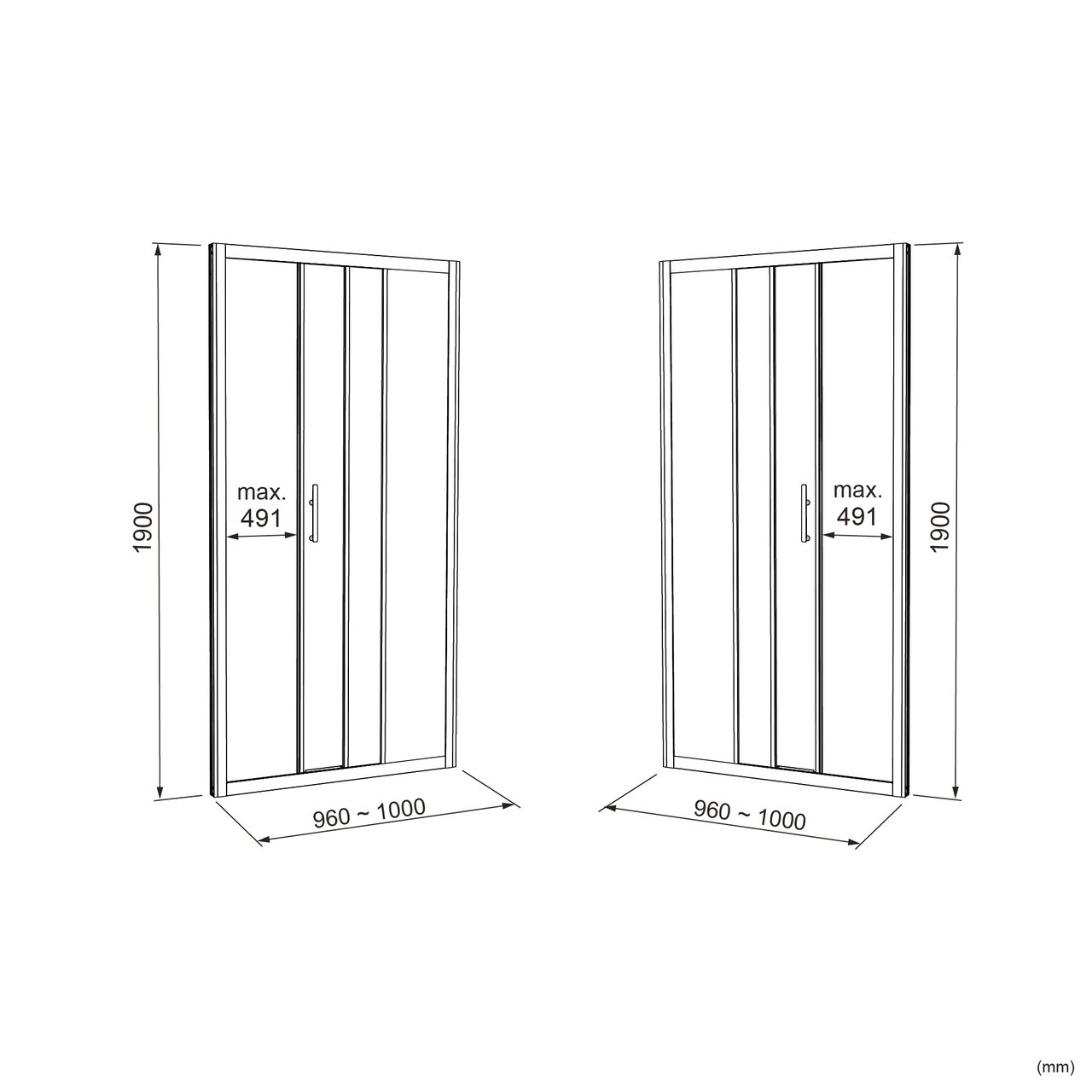 Regelbereik breedte douchedeur | 96 - 100 cm | |