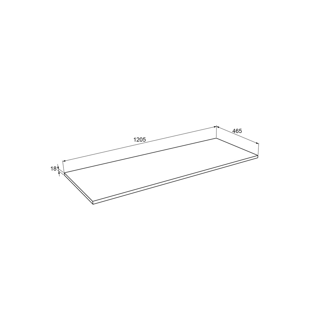 Deze melamine tablet heeft een breedte van 120 cm, een diepte van 46 cm en een randhoogte van 1,8 cm. Deze tablet in leisteen grijs past in elke badkamer door zijn strakke afwerking.