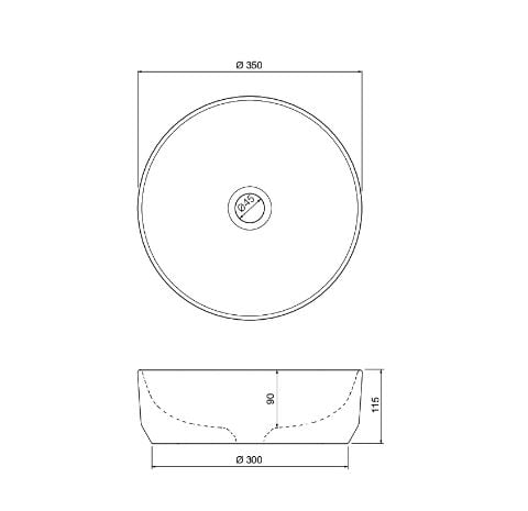 Deze porselein waskom heeft een diameter van 34 cm en een hoogte van 11,5 cm. Deze mat zwarte waskom past in elke badkamer door zijn strakke ronde vorm.