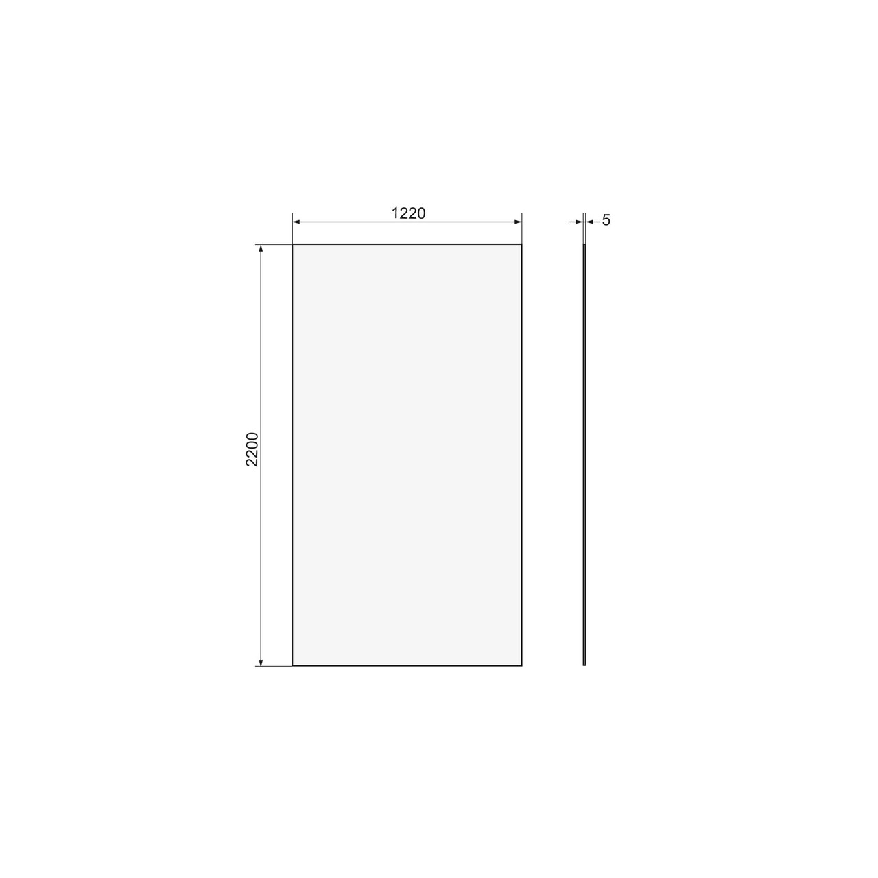 Dit douchewandpaneel is 122 cm breed en 220 cm hoog.