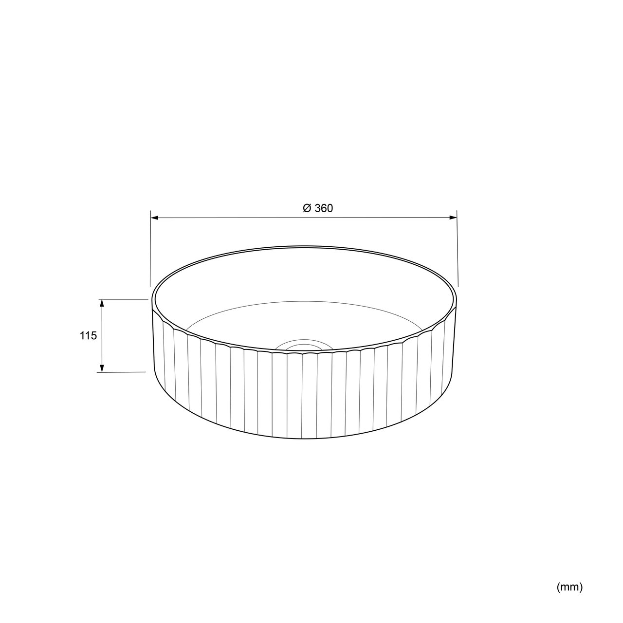 Deze porselein waskom heeft een diameter van 36 cm en een hoogte van 11,5 cm. Deze mat zwarte waskom past in elke badkamer door zijn strakke ronde vorm.