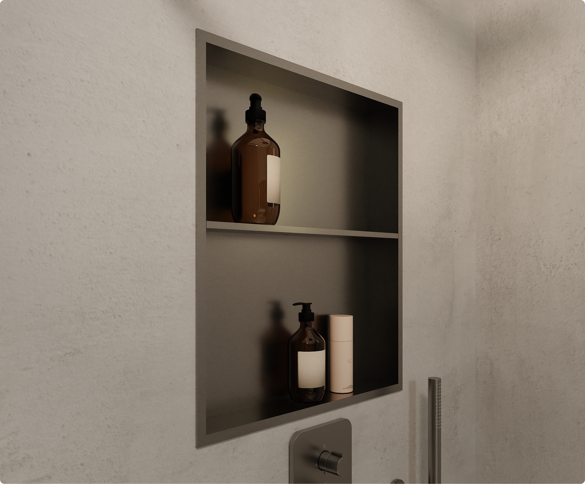 De Blaufoss Box is een stijlvolle inbouwnis die perfect combineerbaar is met het Heau inbouwframe en het Therm-eau fix instant warmwatersysteem. Zo blijft het Heau-vat altijd eenvoudig bereikbaar, zonder extra moeite. Je integreert de nis rechtstreeks in je douchewand voor een praktische en elegante oplossing. Bovendien is de nis verkrijgbaar in verschillende PVD-kleuren: ideaal om te matchen met je douchekranen.
