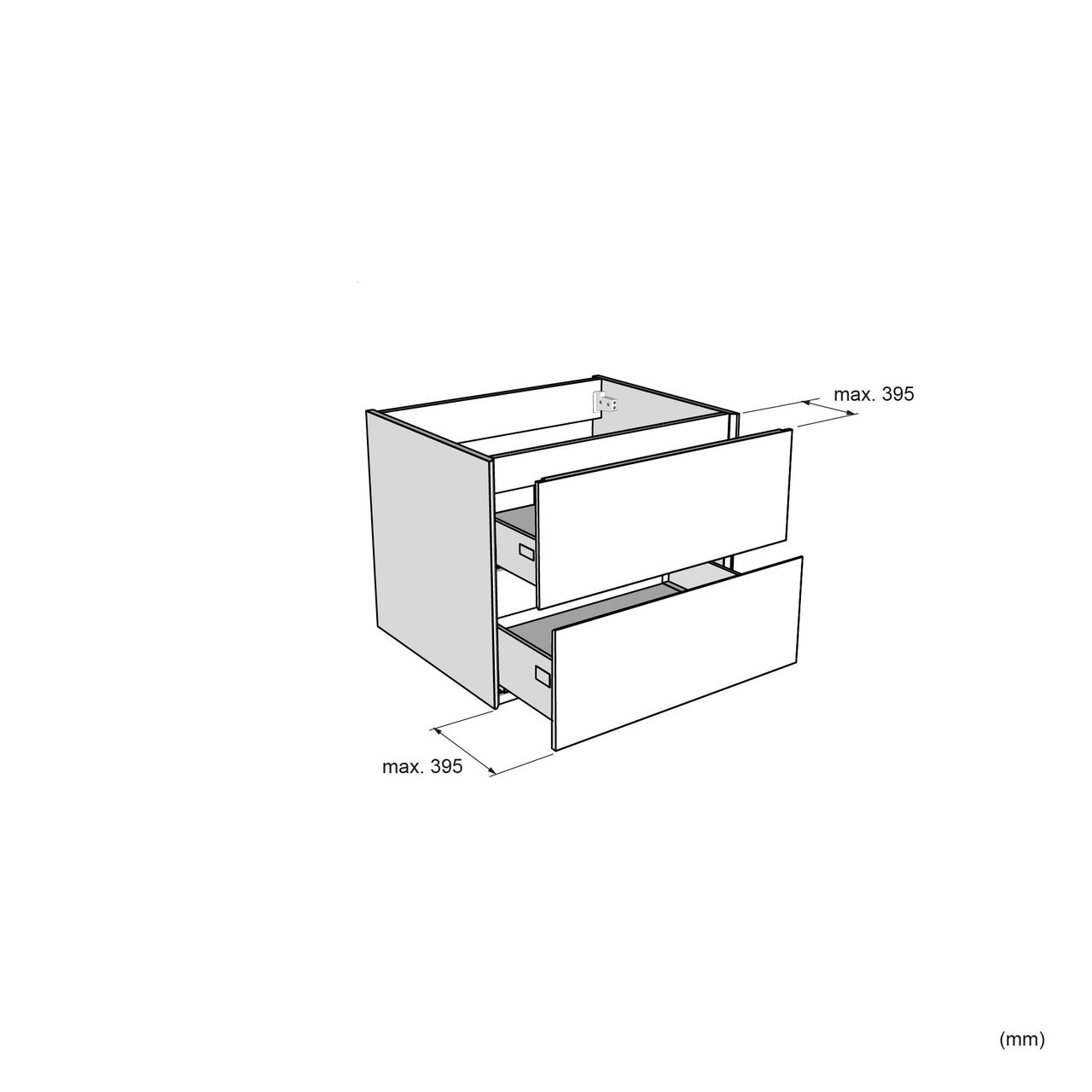 Deze melamine wastafelonderkast met 2 lades heeft een breedte van 65 cm, een hoogte van 52 cm en een diepte van 52 cm. Deze zwevende kast in notelaar past in elke badkamer door zijn strakke afwerking.