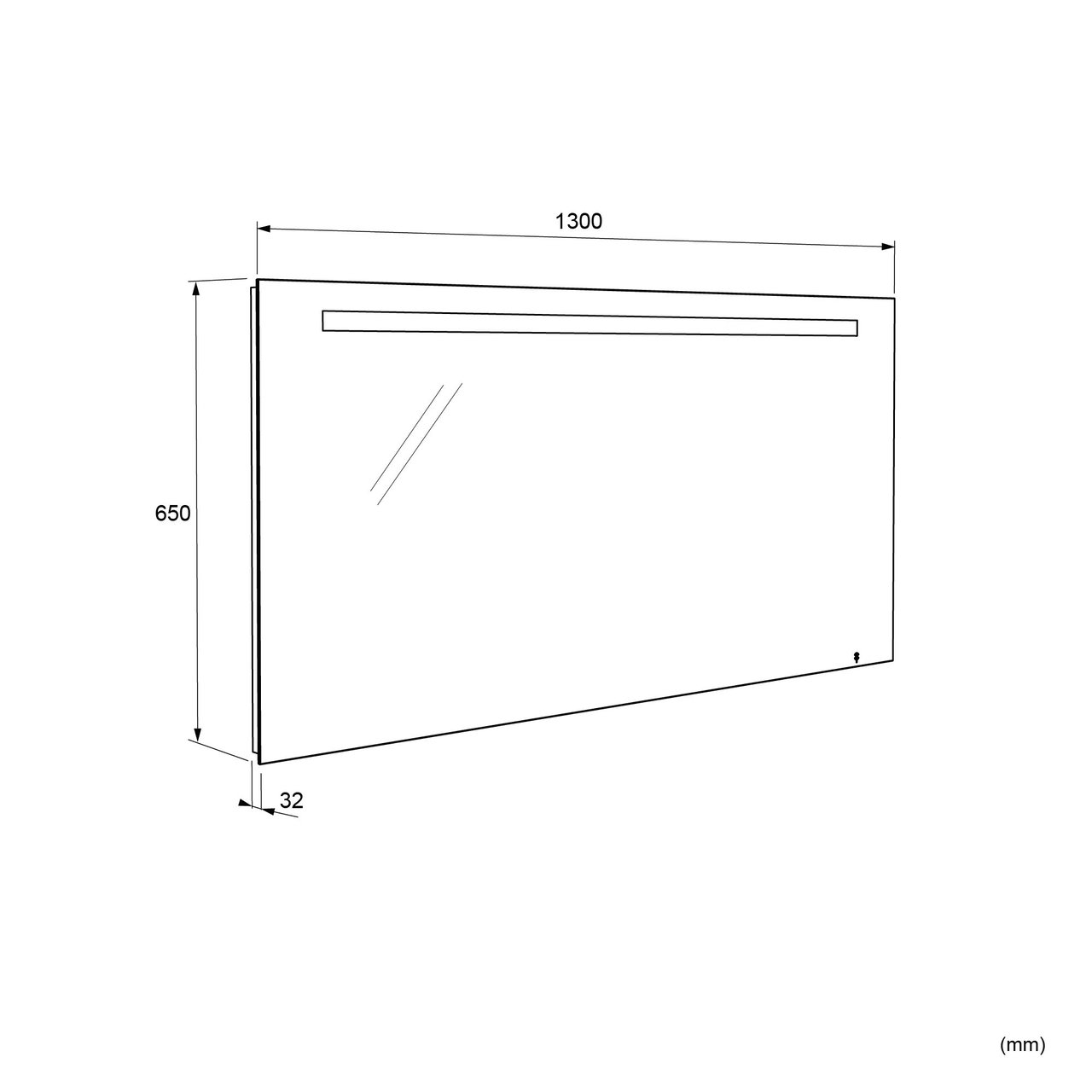 Dit rechthoekig spiegelpaneel heeft een breedte van 130 cm en een hoogte van 65 cm. De spiegel met verlichting past in elke badkamer door zijn verfijnde uitstraling.