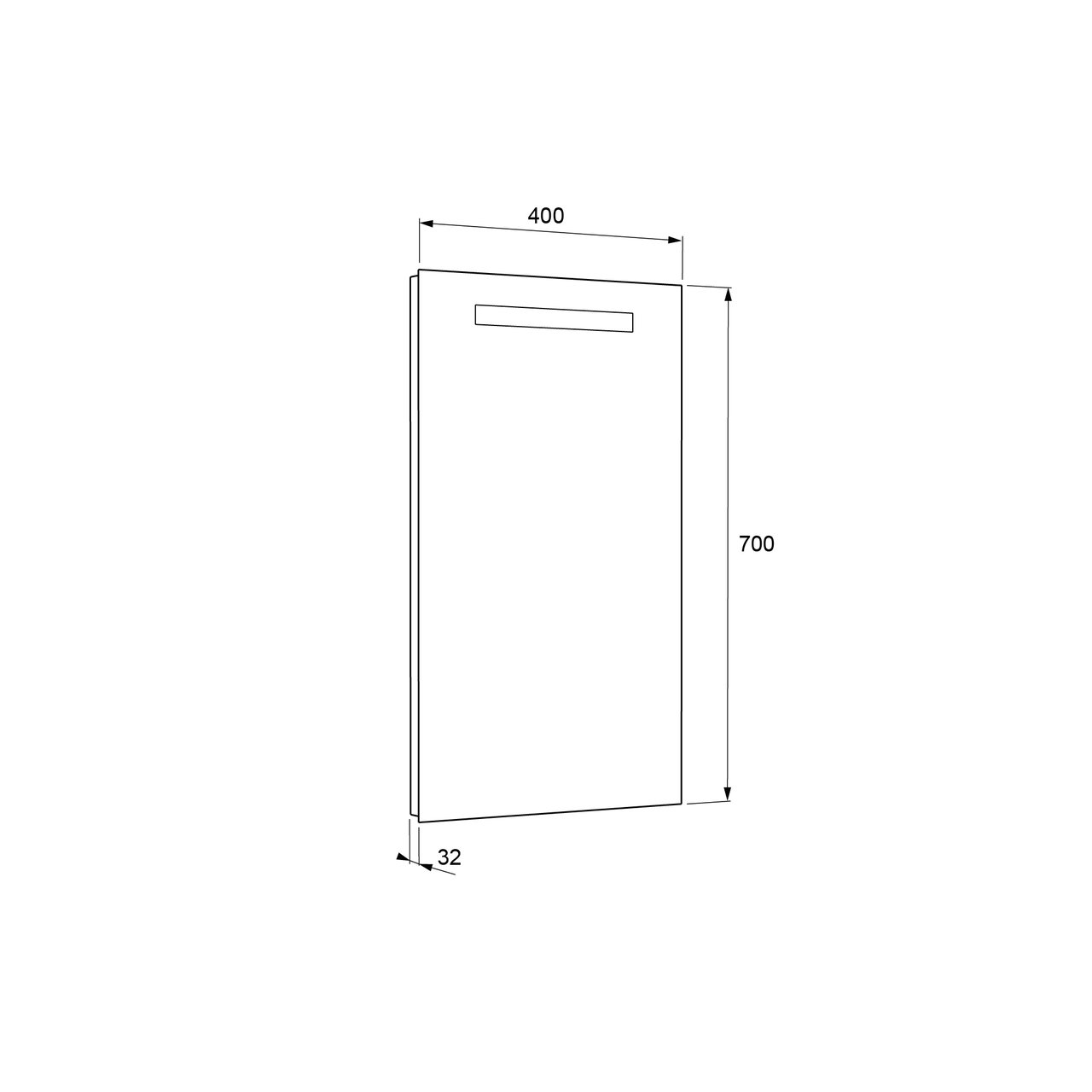 Dit rechthoekig spiegelpaneel heeft een breedte van 40 cm en een hoogte van 70 cm. De spiegel met verlichting past in elke toiletruimte door zijn no-nonsense stijl
