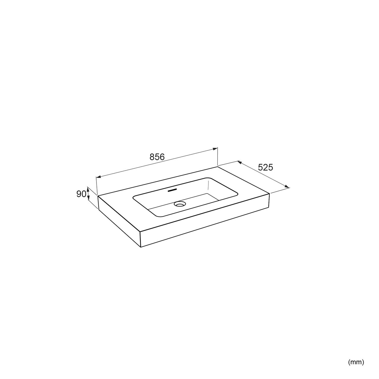 Deze Solid Surface wastafel met geïntegreerde waskom heeft een breedte van 85 cm, een diepte van 52 cm en een randhoogte van 9 cm. Deze mat witte wastafel past in elke badkamer door zijn elegante afwerking.