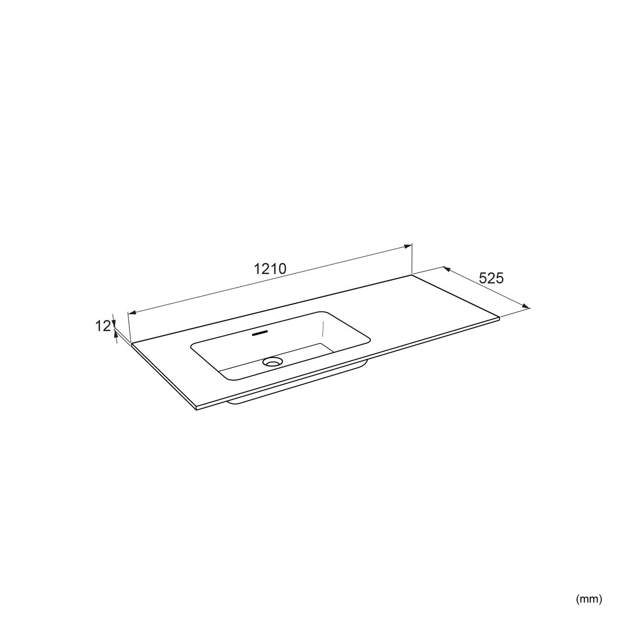 Deze asymmetrische Solid Surface wastafel met geïntegreerde waskom heeft een breedte van 120 cm, een diepte van 52 cm en een randhoogte van 1,2 cm. Deze mat witte wastafel past in elke badkamer door zijn elegante afwerking.