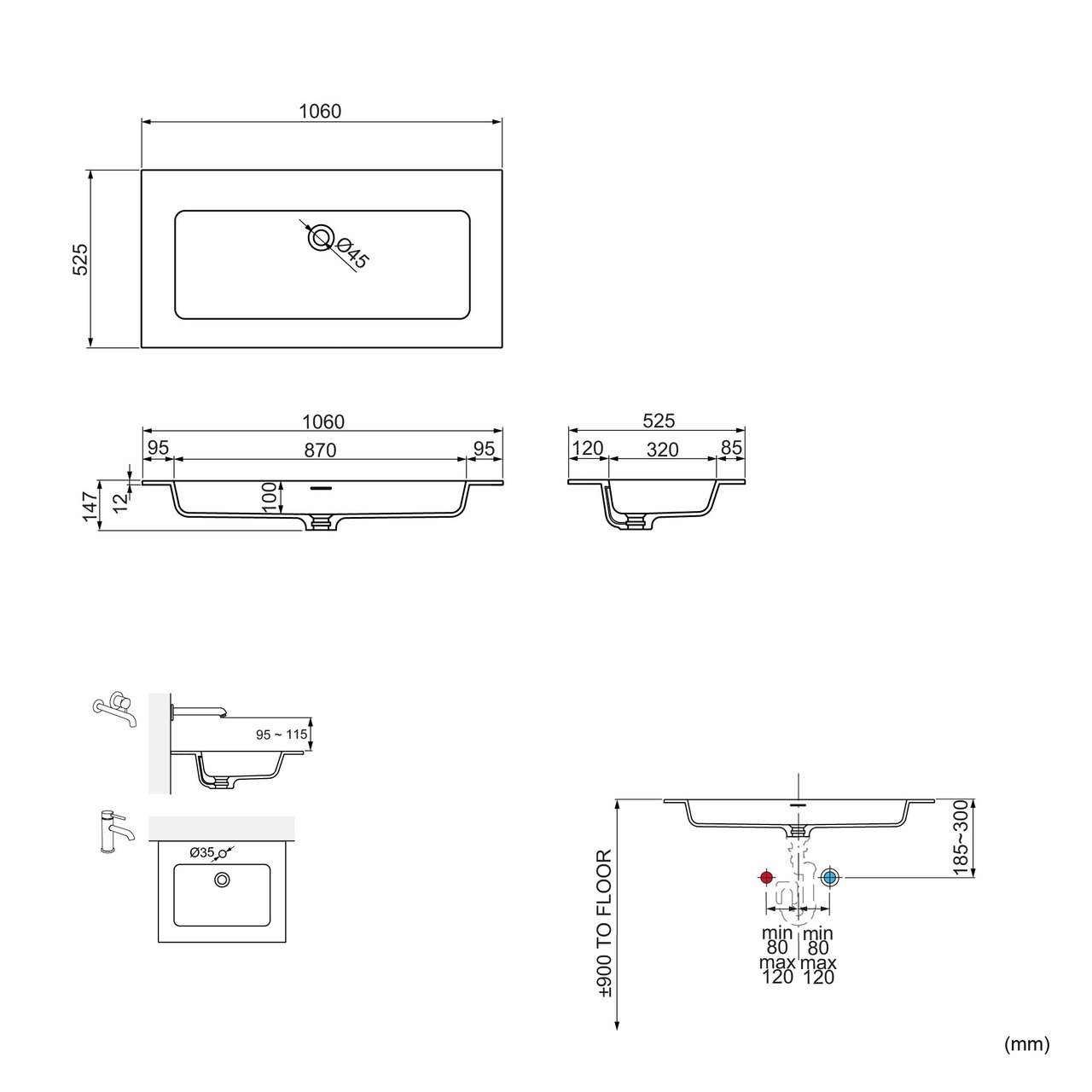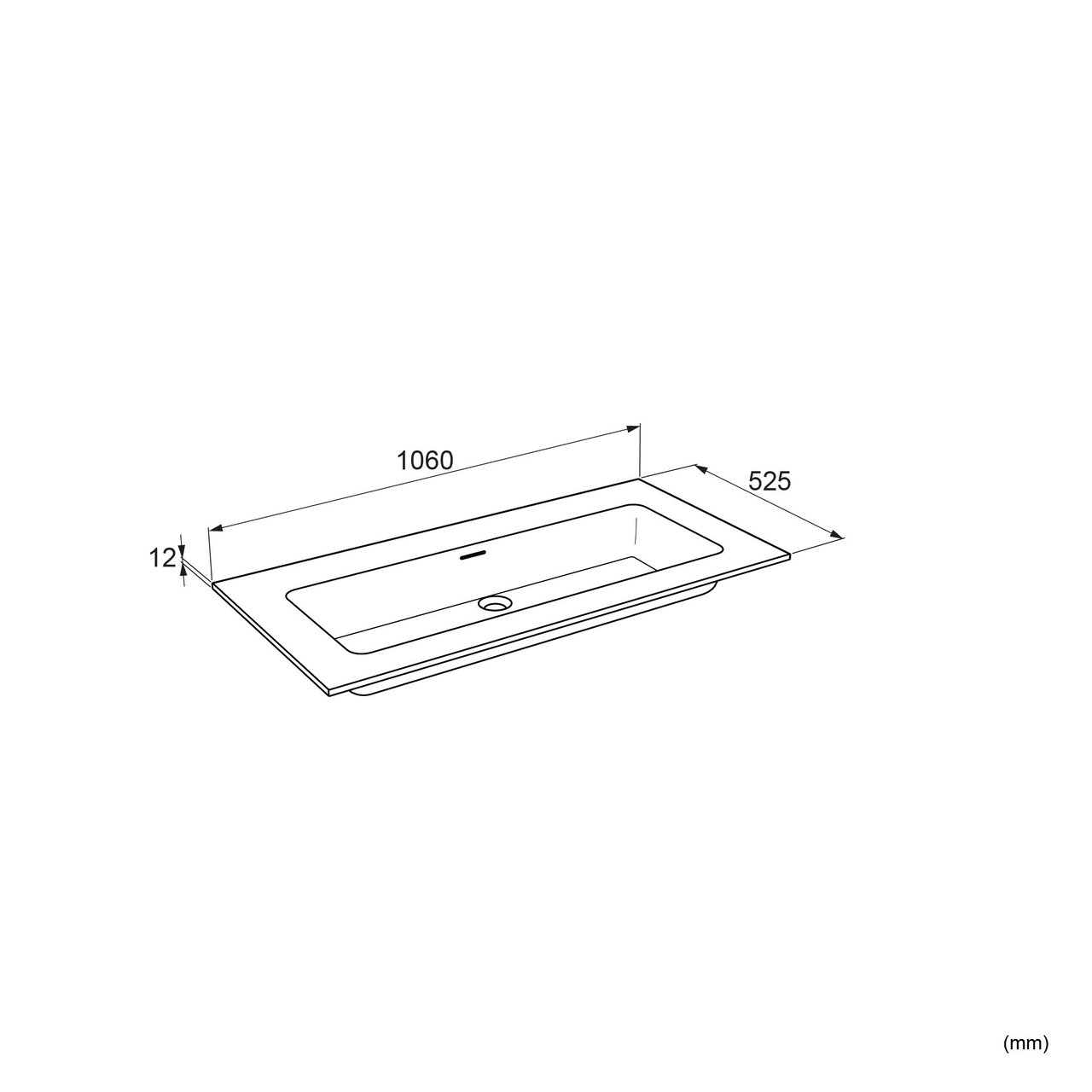 | Afmetingen | 105 x 52 cm (Enkele wastafel voor 2 kraangaten) | |