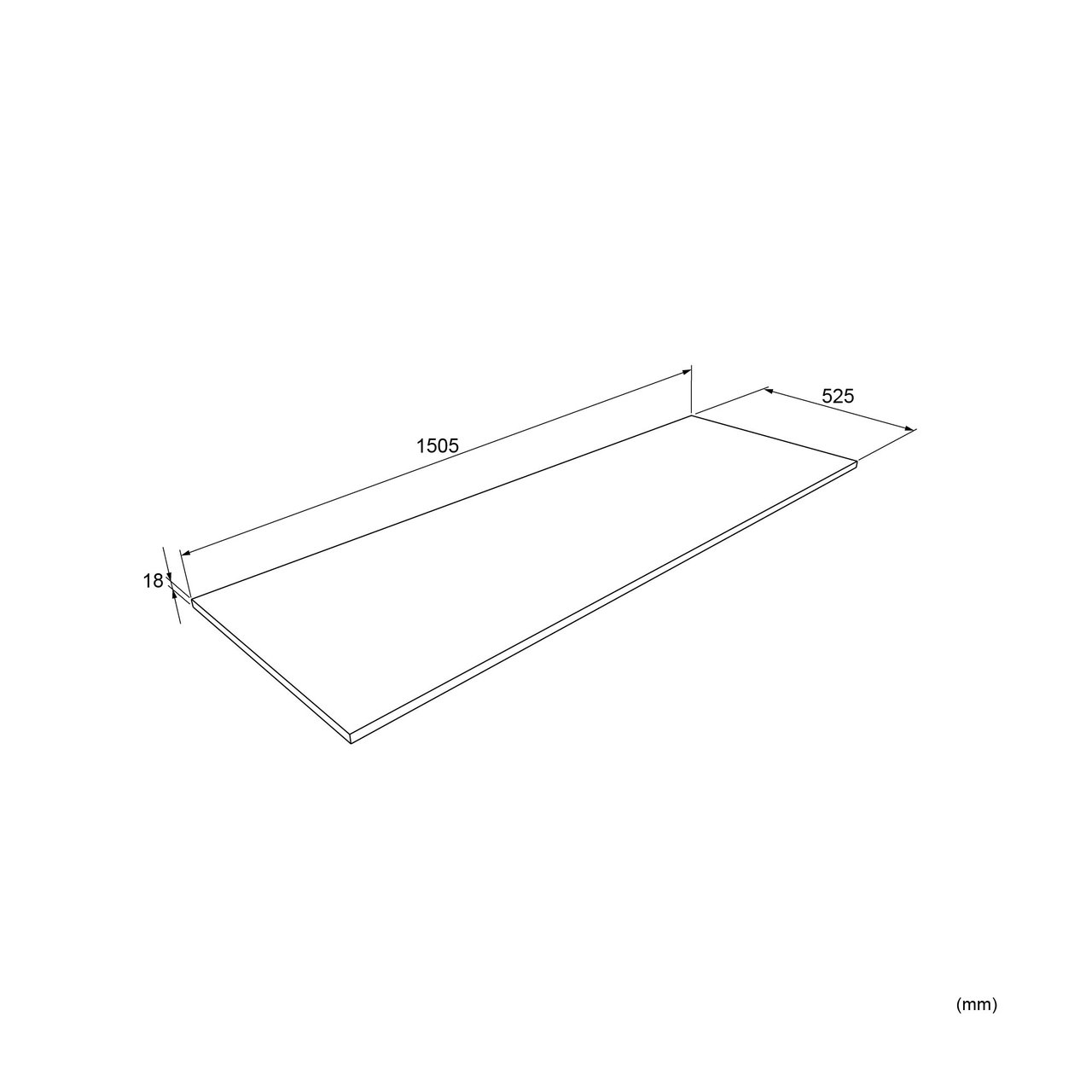 Deze melamine tablet heeft een breedte van 150 cm, een diepte van 52 cm en een randhoogte van 1,8 cm. Deze tablet in ruwe eik past in elke badkamer door zijn strakke afwerking.