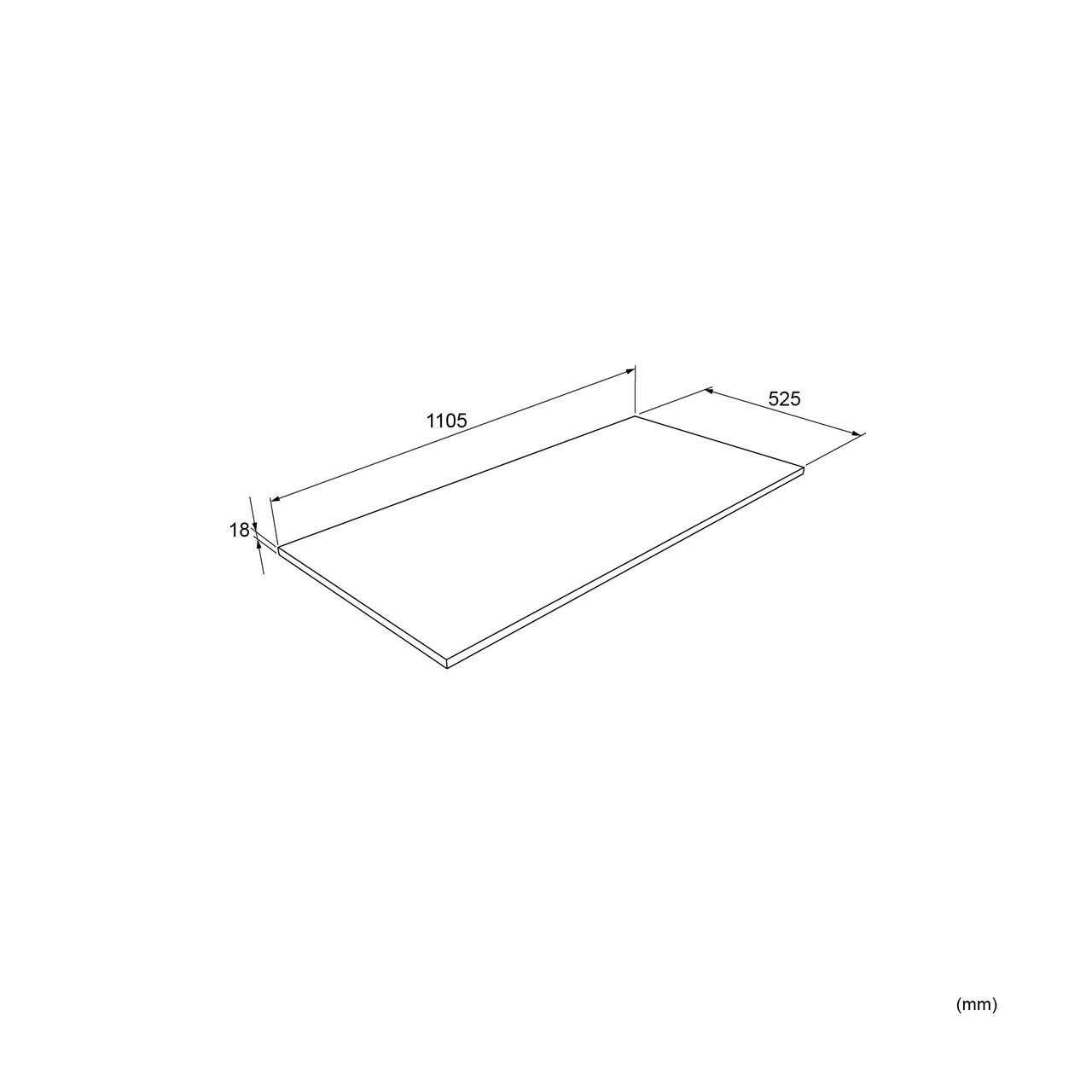 Deze MDF tablet heeft een breedte van 110 cm, een diepte van 52 cm en een randhoogte van 1,8 cm. Deze tablet in mat zwart past in elke badkamer door zijn strakke afwerking.