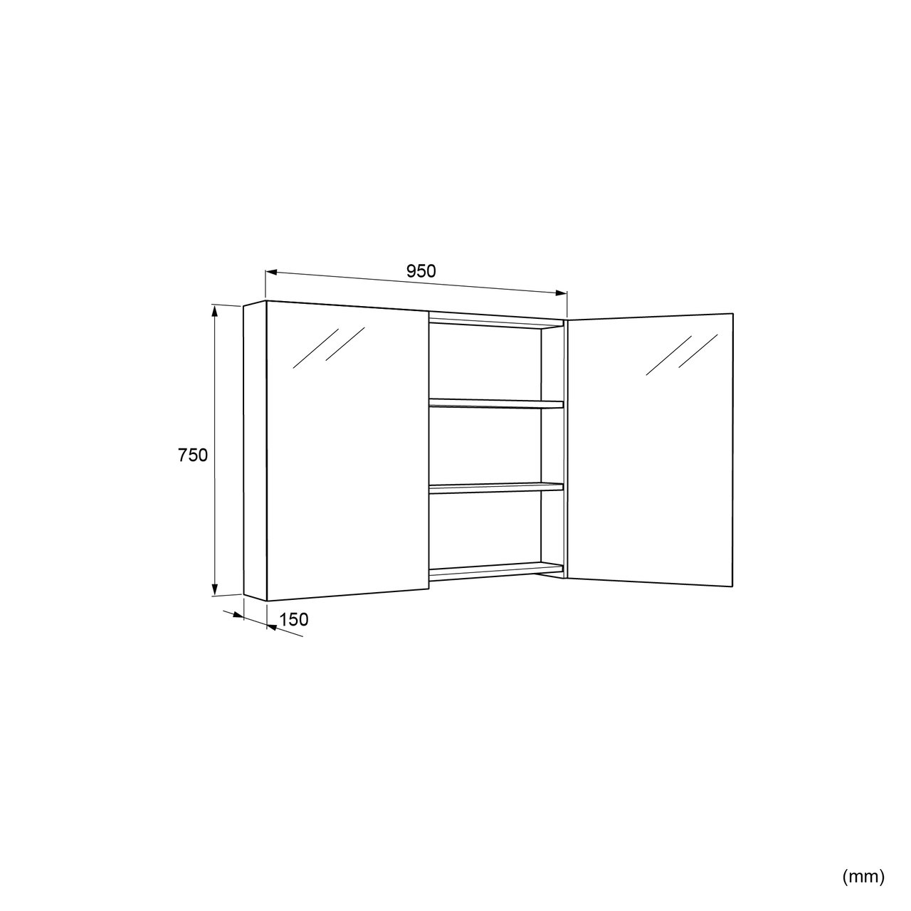 Deze MDF spiegelkast met matte lak heeft een breedte van 95 cm, een hoogte van 75 cm en een diepte van 15 cm. Deze spiegelkast in mat zwart past perfect in een badkamer met een tijdloze uitstraling.