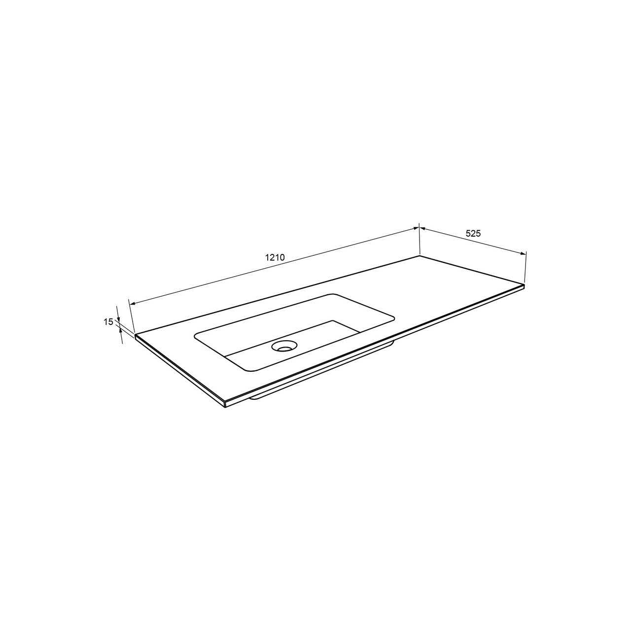Deze asymmetrische kwarts wastafel met geïntegreerde waskom heeft een breedte van 120 cm, een diepte van 52 cm en een randhoogte van 1,5 cm. Deze mat zwarte wastafel past in elke badkamer door zijn strakke afwerking.