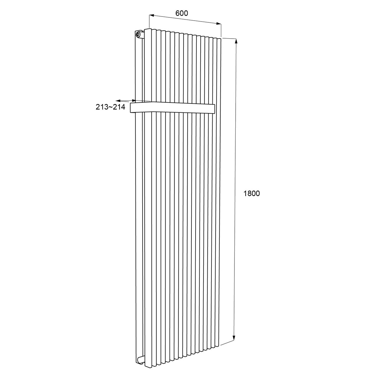 Deze radiator met buizen heeft een breedte van 60 cm en een hoogte van 180 cm. De mat zwarte radiator past in elke badkamer door zijn tijdloze uitstraling.