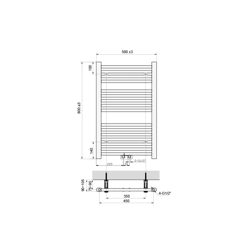 Deze radiator met ronde buizen heeft een breedte van 50 cm en een hoogte van 80 cm. De mat witte radiator past in elke badkamer door zijn elegante afwerking.