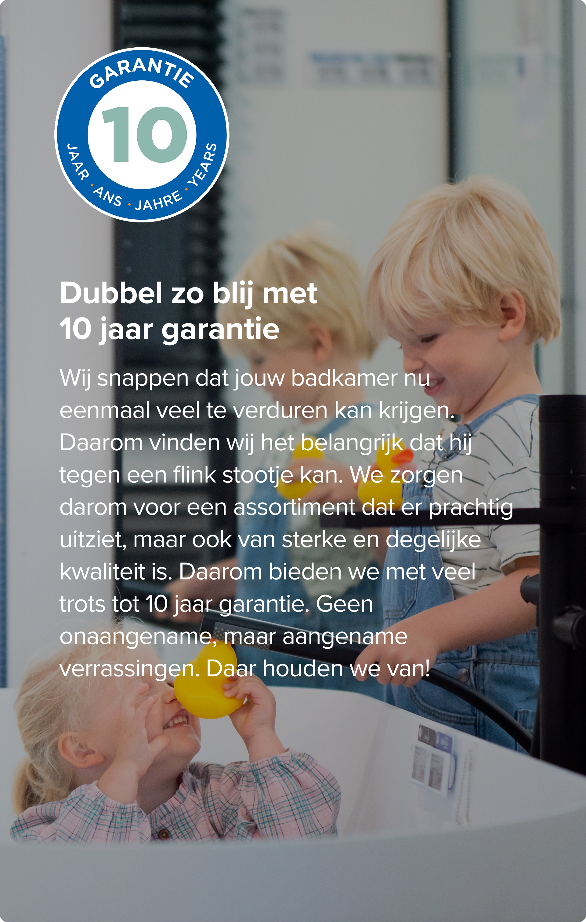 Wij snappen wel, een (verbouw)project gaat niet altijd zonder slag of stoot. Loopt de volledige verbouwing vertraging op of wordt jouw nieuwbouwhuis later opgeleverd dan gepland? Wij kunnen jouw badkamer tot wel 12 maanden gratis opslaan.